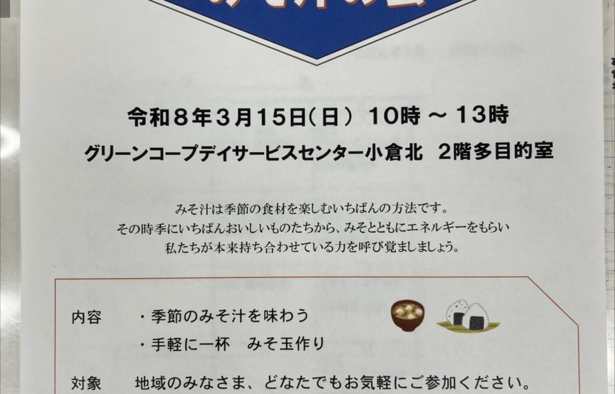 「グリーンコープデイサービスセンター小倉北」では、ご利用者、ご利用者のご家族の個別ニーズに対応し、できるだけご自宅と同じように過ごしていただくことを目指しています。