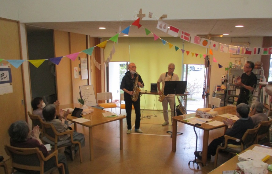 毎月15日には、地域交流サロン「なごみカフェ」を開催しています。幅広い年齢層の方が参加され、ヨガ・体操教室、紙芝居、アロマ他クラフトなど行っています。地域のボランティア講師のみなさんが書道、挿し絵、音楽演奏他来訪され、地域に開かれたデイサービスとなっています。