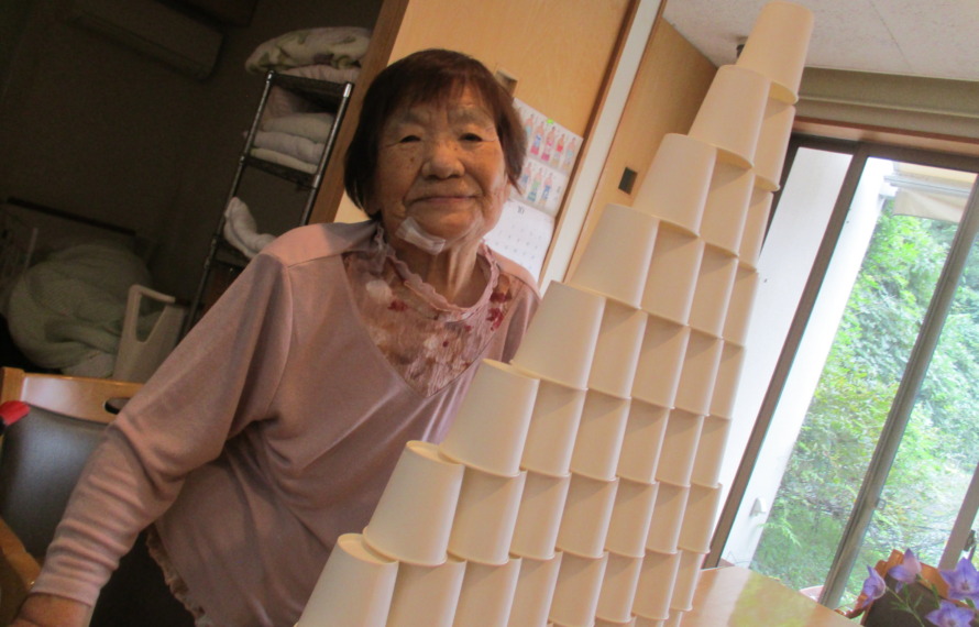 ハラハラドキドキ(≧▽≦)紙コップタワー♪