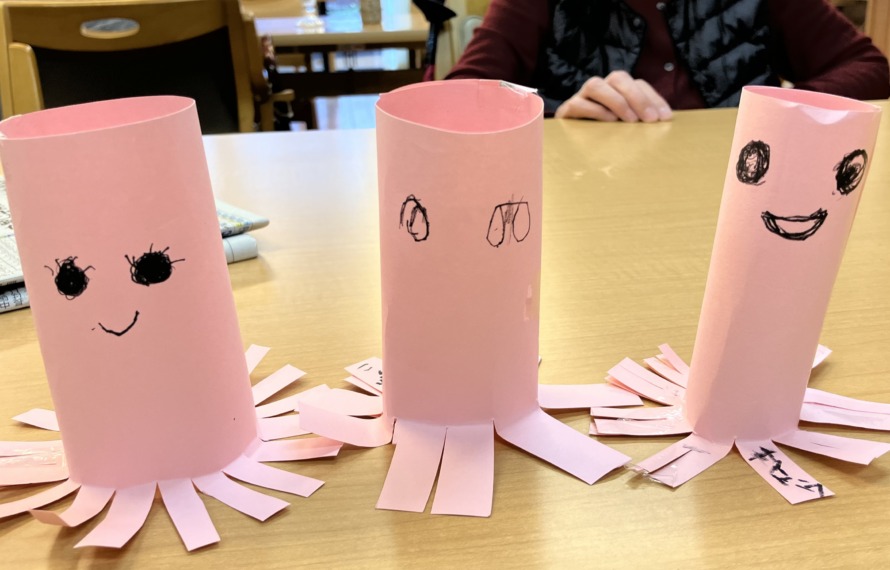 当日のご利用者様が集まるまで、順番に入浴したり、隣席の方との会話やプリントに取り組んでいます。