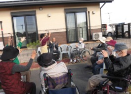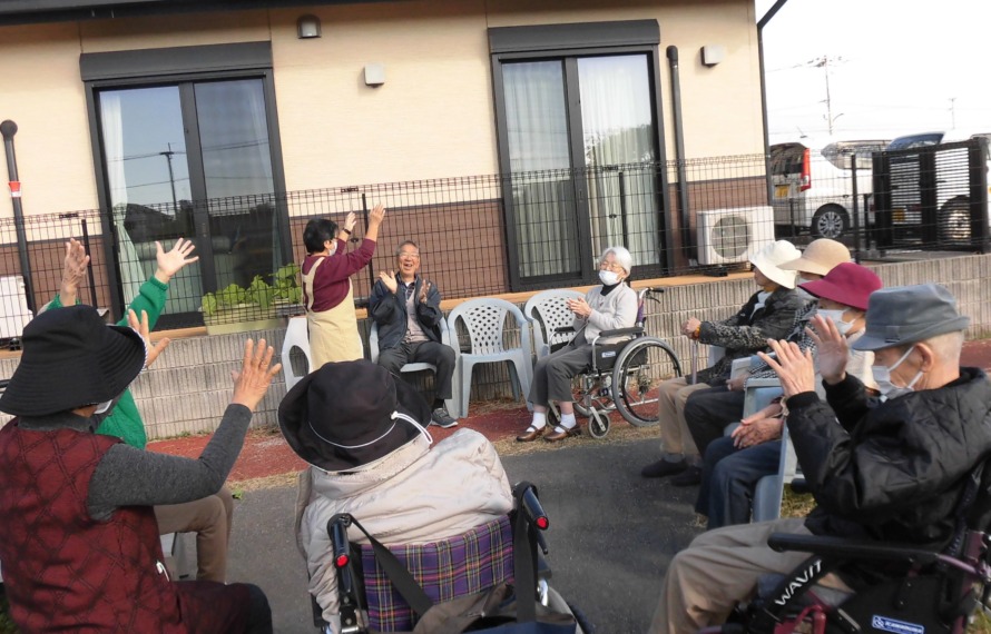 最後まで、住み慣れたお家で生活できますように、ご利用者の筋力維持を目指し毎日「朝の体操・園庭歩き・ラジオ体操・口腔体操・立ち上がりの運動」を一日の中で、分けて行なっています