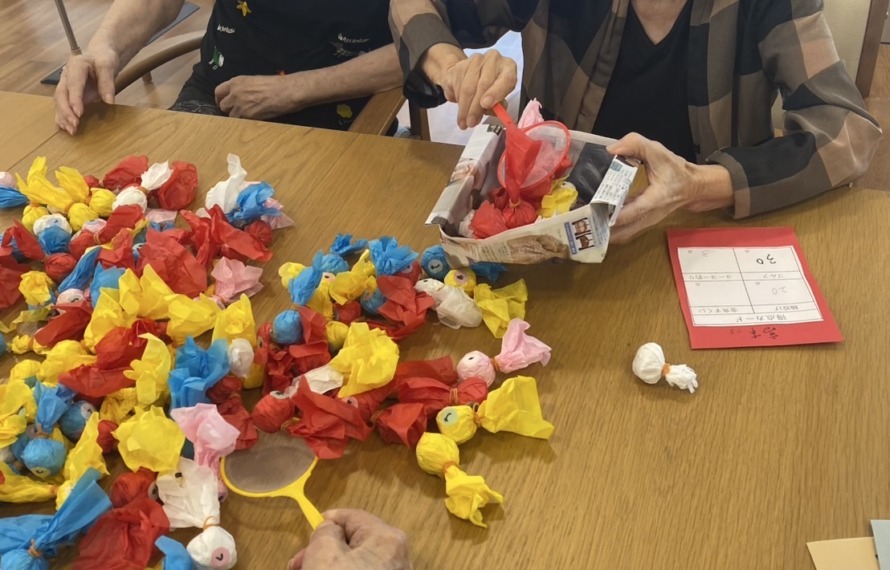 体調に問題がない方からお一人ずつ入浴を始めます。 入浴まではそれぞれ塗り絵をしたり、歌謡曲の鑑賞をしたり自由に過ごしていただいています。