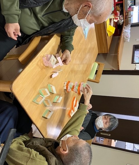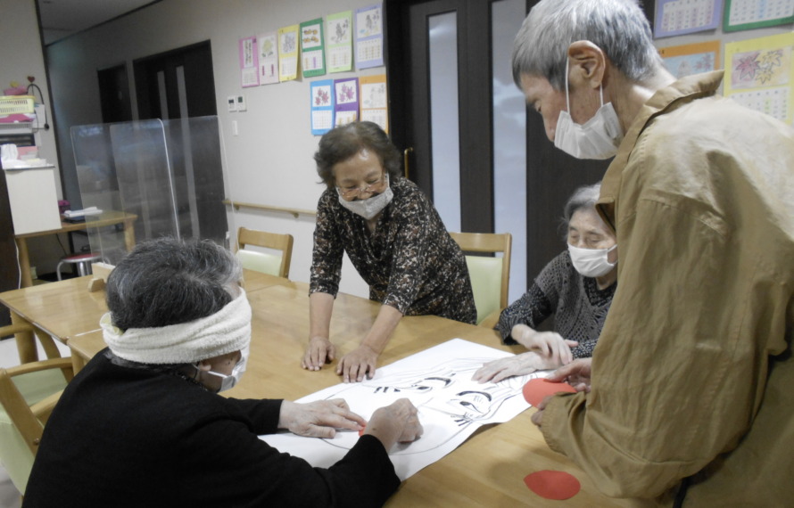 ・利用者様、スタッフ一緒に楽しく身体を動かします。 ・個々の能力に合わせた脳トレ(パズル、色塗り、間違い探し等)、手指運動、生活訓練等を行います。