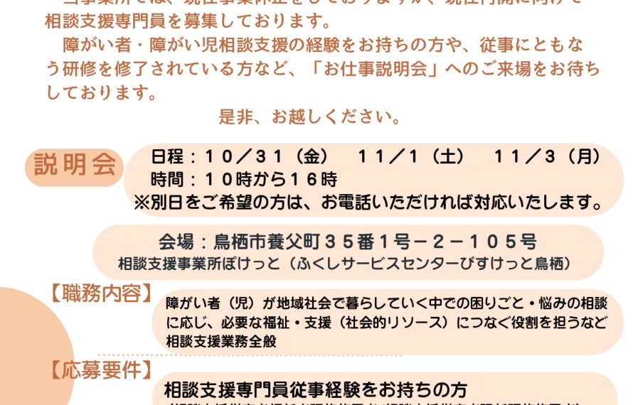 このたび、相談支援事業所ぽけっとは、諸般の事情により2025年4月30日をもって事業を休止しております。