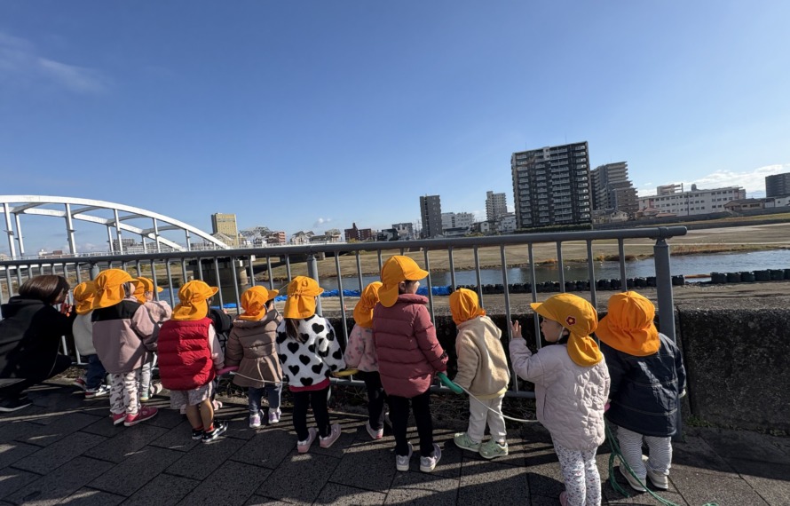 晴れた日にはお散歩や公園へ出かけます。河川敷まで行った時は思いっきりかけっこをします。熊本駅界隈への散策も楽しんでいます。