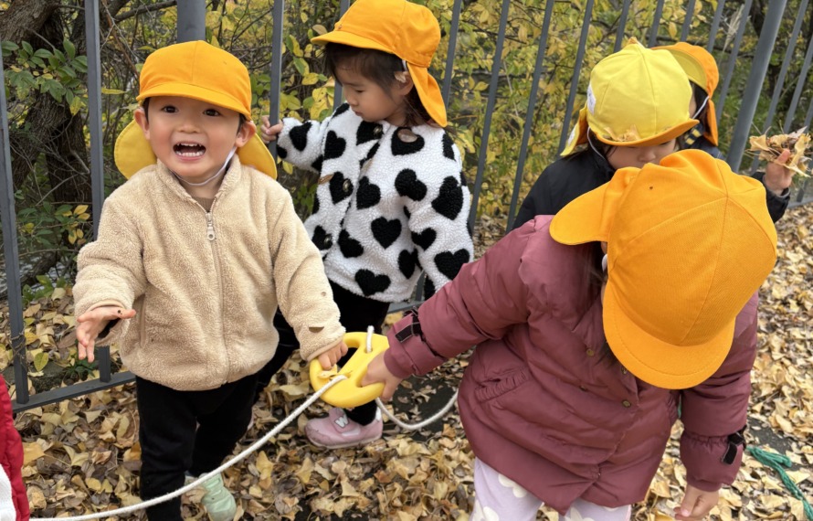 近くの公園へお散歩へ!落ち葉を拾っておばけを作っていました⭐︎