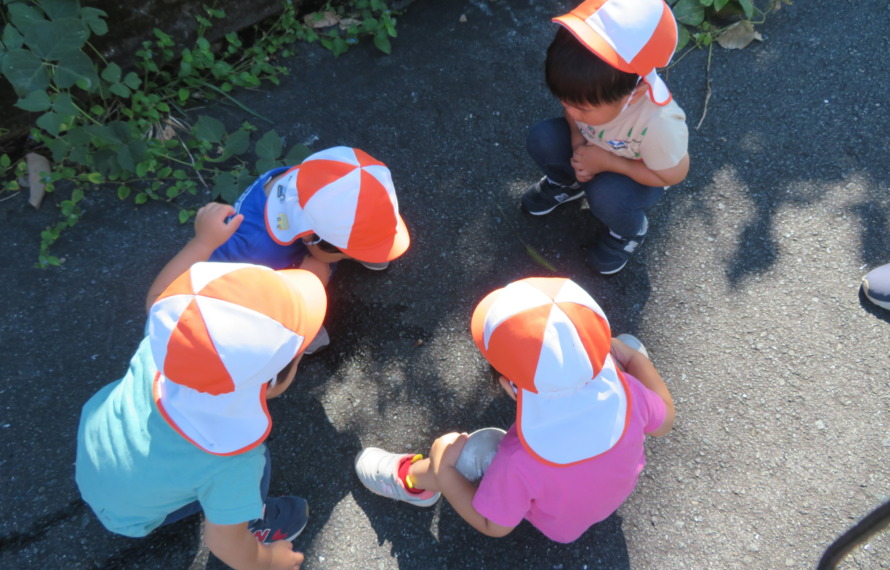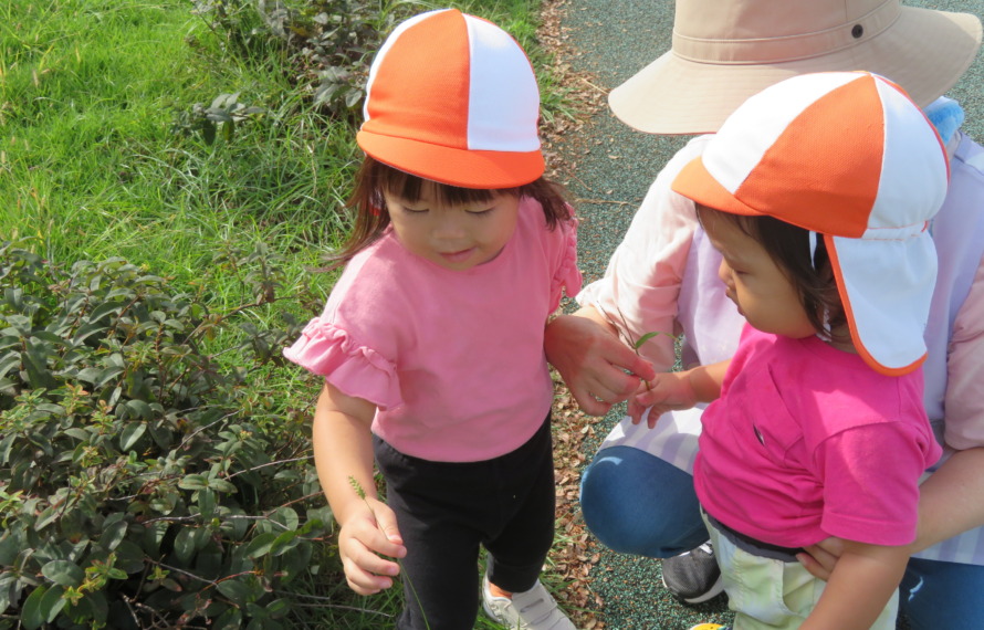 天気がいい日には、公園へお散歩に出かけ、たくさんの自然に触れています☺近所のアイドルのような子どもたちです♪